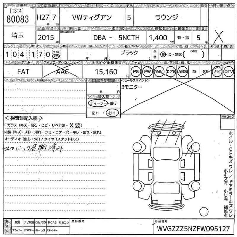 Volkswagen TIGUAN с аукциона Японии MIRIVE Saitama лот № 80083