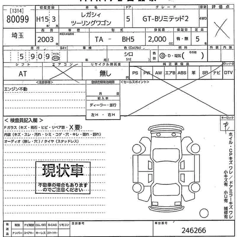 Subaru LEGACY с аукциона Японии MIRIVE Saitama лот № 80099