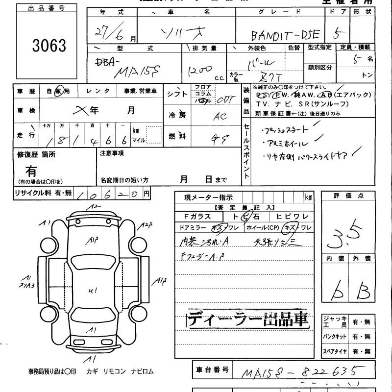 Suzuki SOLIO с аукциона Японии KCAA Minami Kyushu лот № 3063