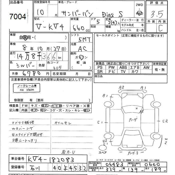 Subaru SAMBAR с аукциона Японии JU Ishikawa лот № 7004