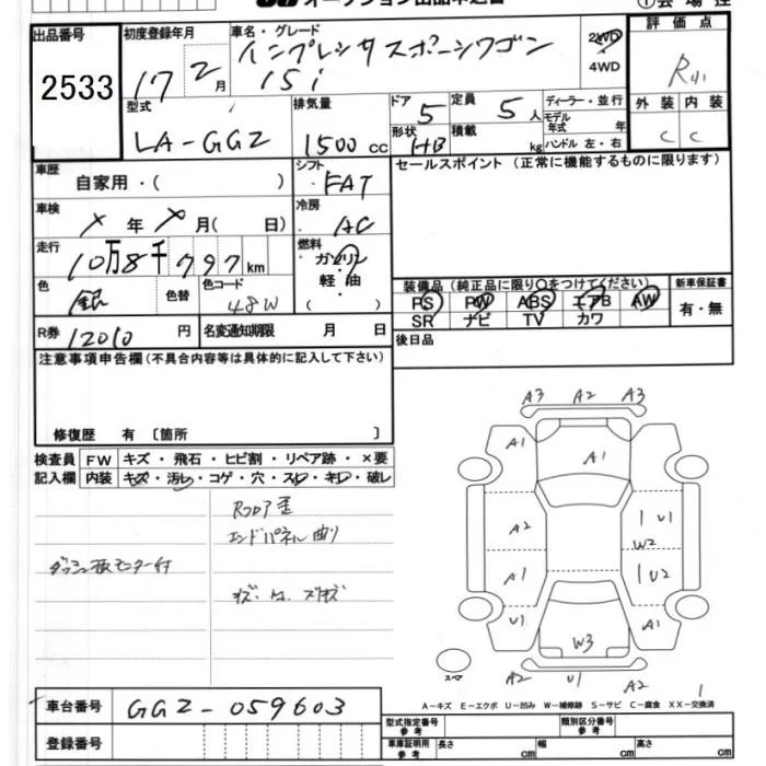 Subaru IMPREZA с аукциона Японии JU Ibaraki лот № 2533