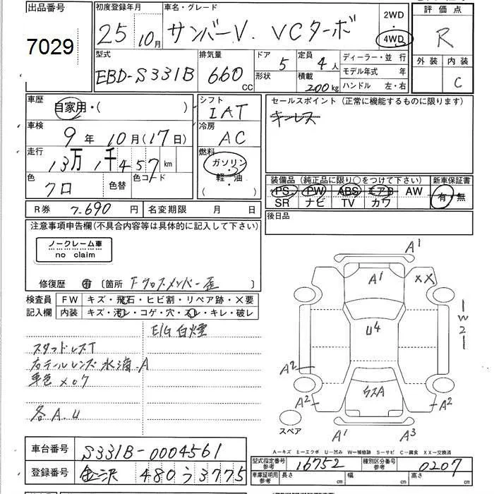 Subaru SAMBAR с аукциона Японии JU Ishikawa лот № 7029