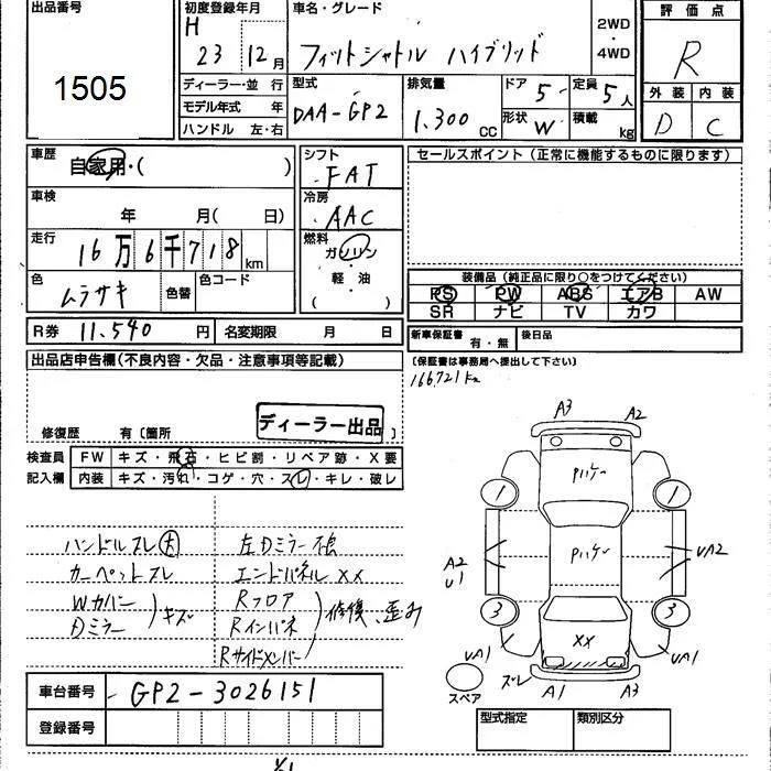 Honda FIT SHUTTLE с аукциона Японии JU Kumamoto лот № 1505