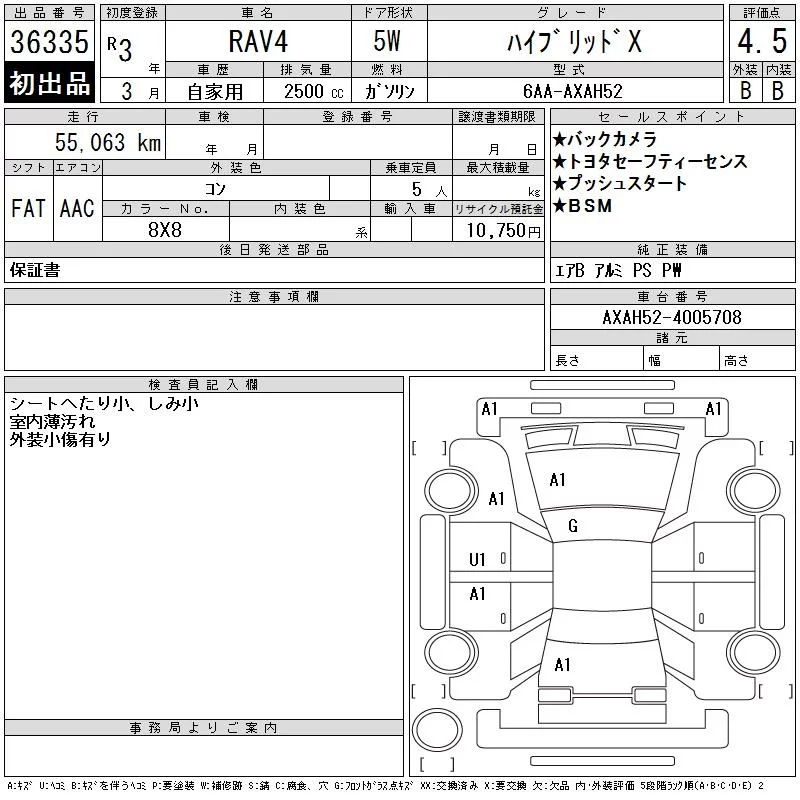 Toyota RAV4 с аукциона Японии CAA Chubu лот № 36335