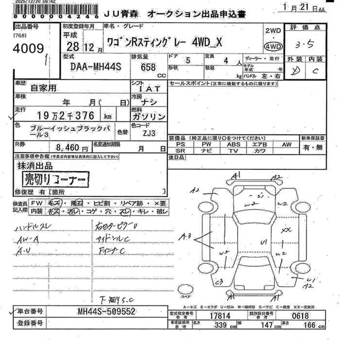 Suzuki WAGON R с аукциона Японии JU Aomori лот № 4009
