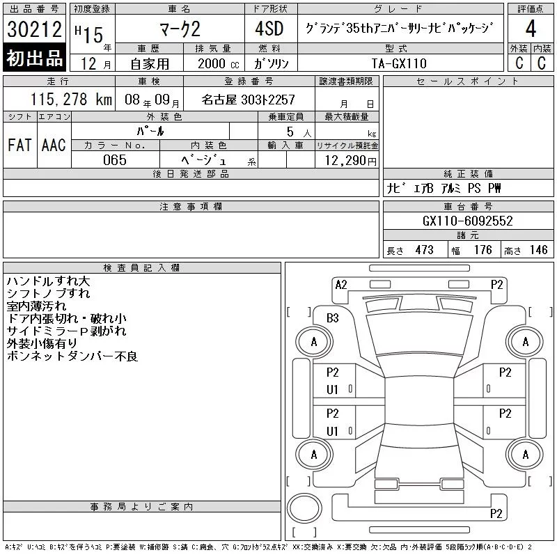 Toyota MARK II с аукциона Японии CAA Chubu лот № 30212