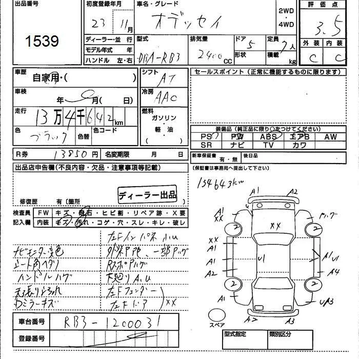 Honda ODYSSEY с аукциона Японии JU Kumamoto лот № 1539