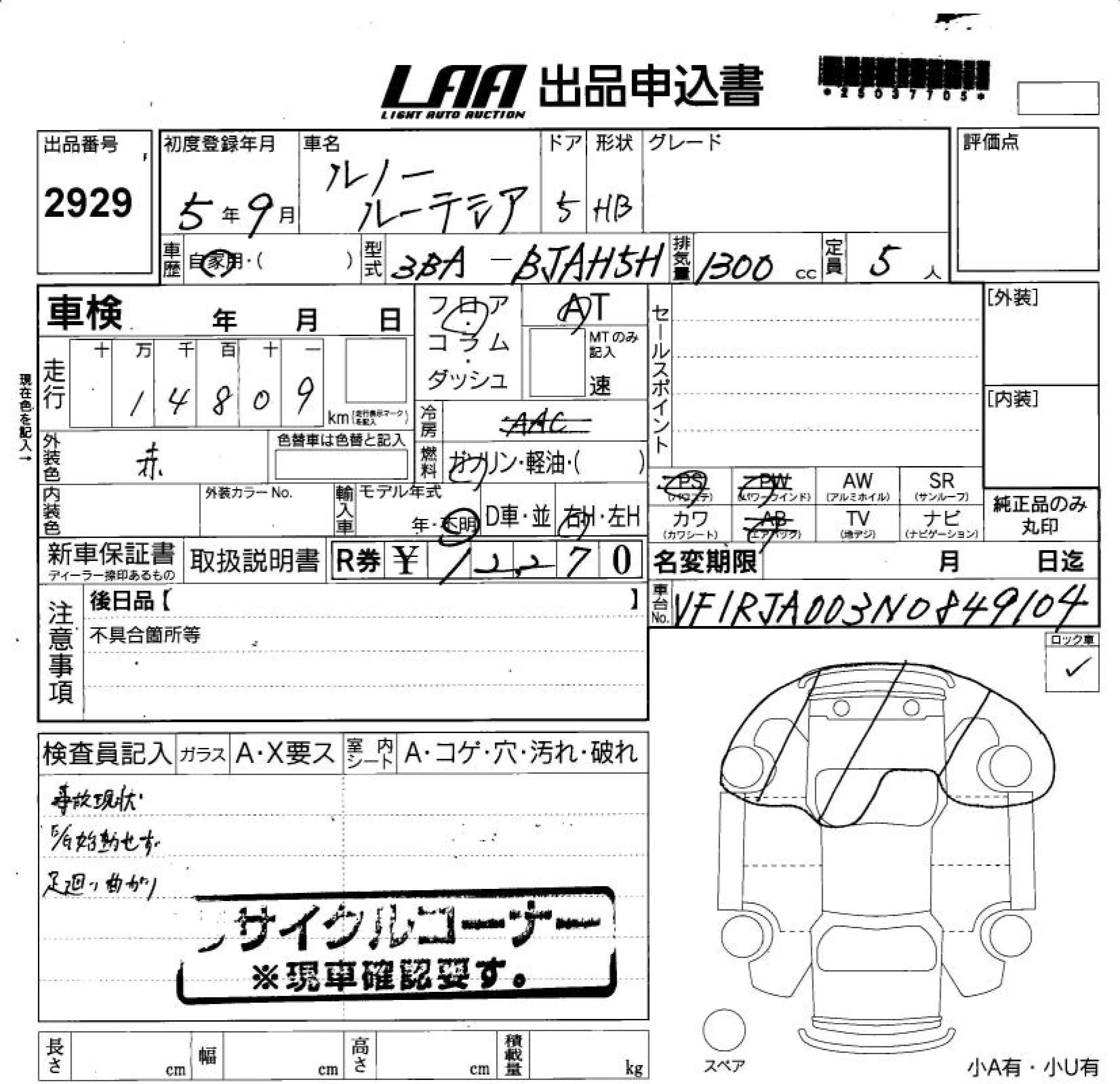 Renault LUTECIA с аукциона Японии LAA Shikoku лот № 2929