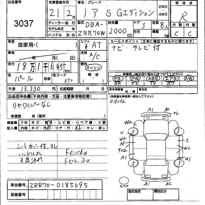 Toyota NOAH с аукциона Японии JU Kumamoto лот № 3037