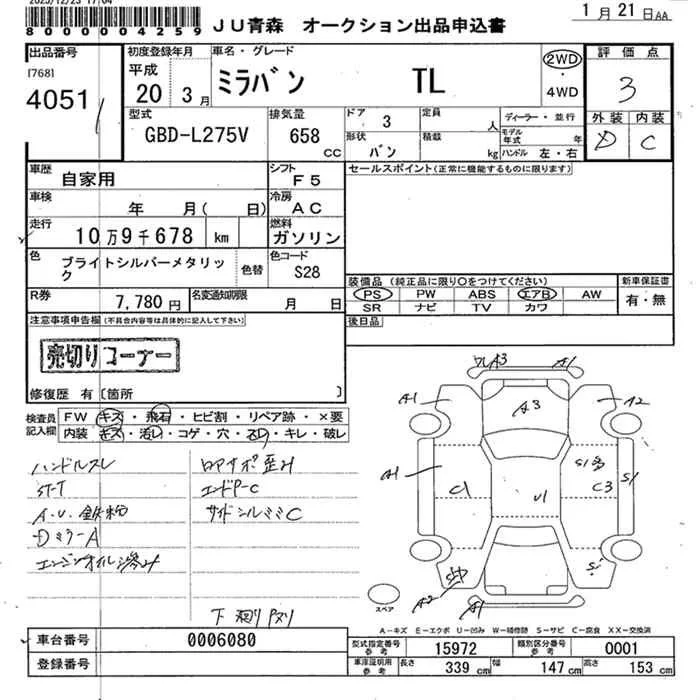 Daihatsu MIRA с аукциона Японии JU Aomori лот № 4051