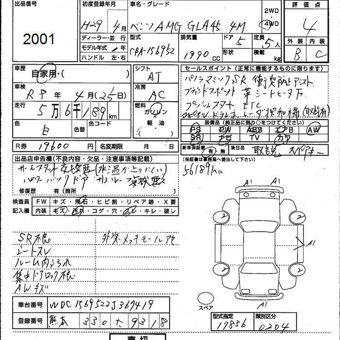 Mercedes-Benz AMG с аукциона Японии JU Kumamoto лот № 2001