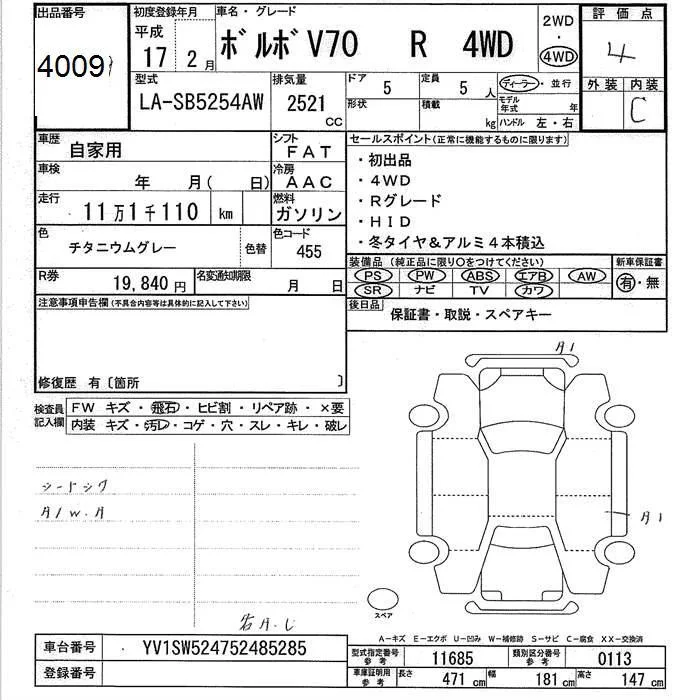 Volvo V70 с аукциона Японии JU Ishikawa лот № 4009