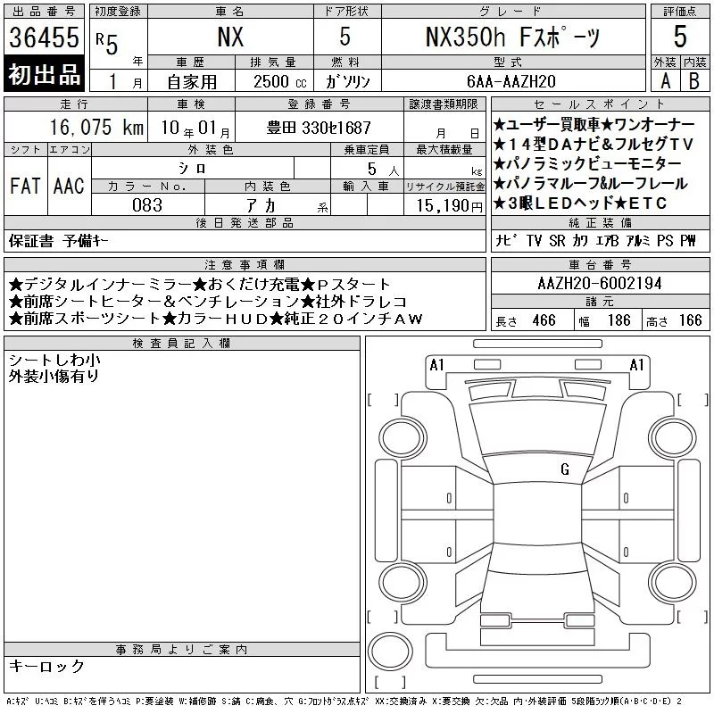 Lexus NX с аукциона Японии CAA Chubu лот № 36455