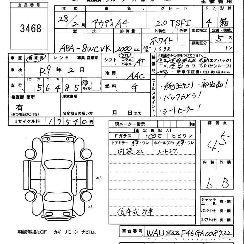Audi A4 с аукциона Японии KCAA Minami Kyushu лот № 3468