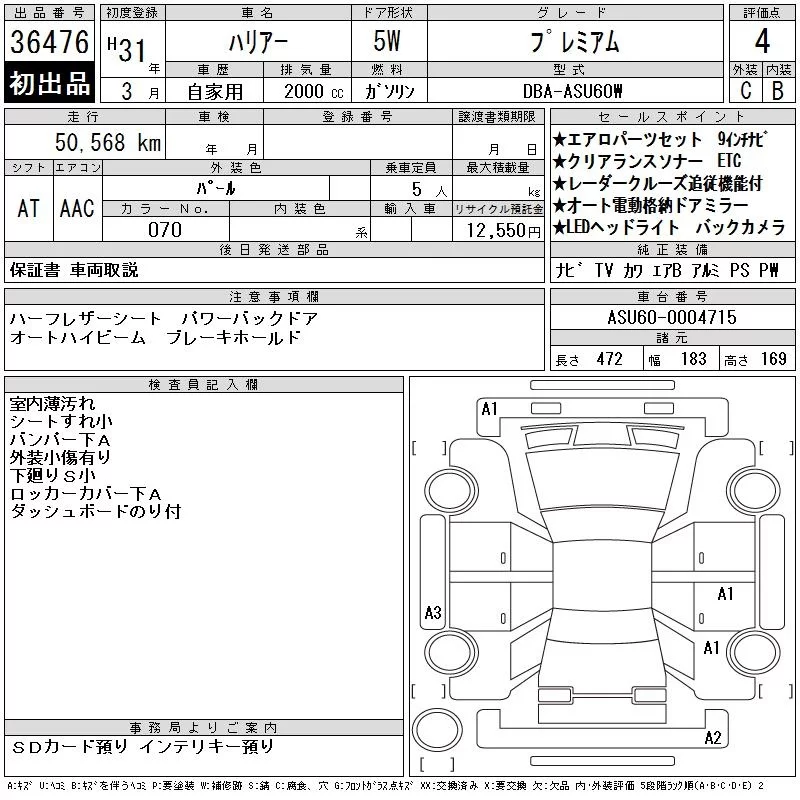 Toyota HARRIER с аукциона Японии CAA Chubu лот № 36476