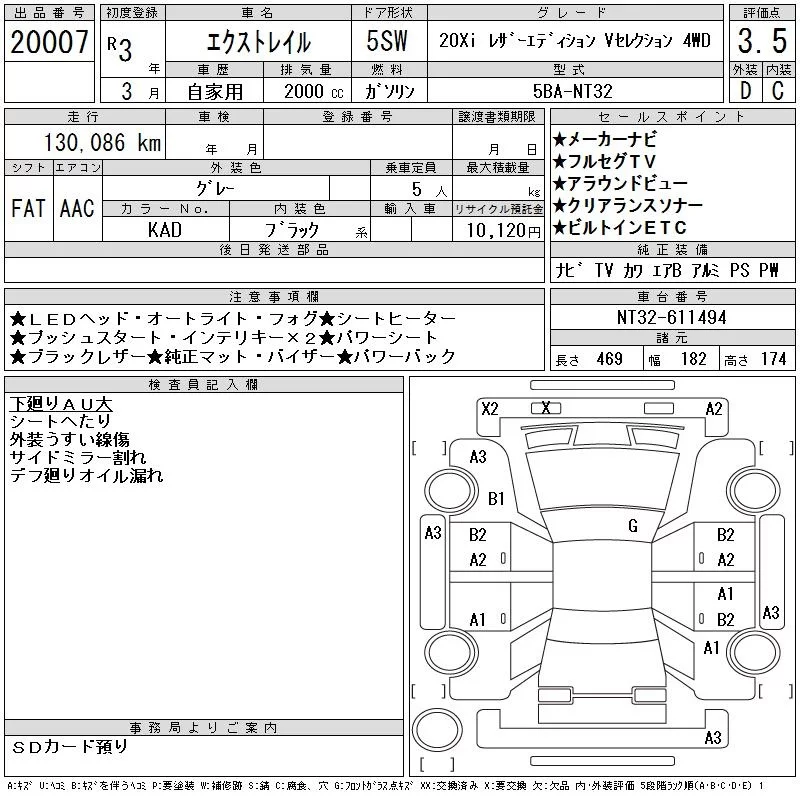 Nissan X-TRAIL с аукциона Японии CAA Chubu лот № 20007