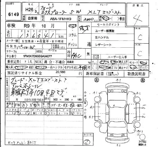 Ford EXPLORER с аукциона Японии IAA Osaka лот № 6149