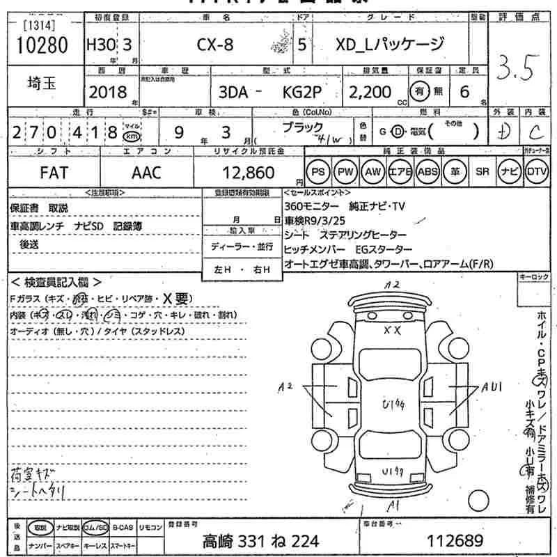 Mazda CX-8 с аукциона Японии MIRIVE Saitama лот № 10280