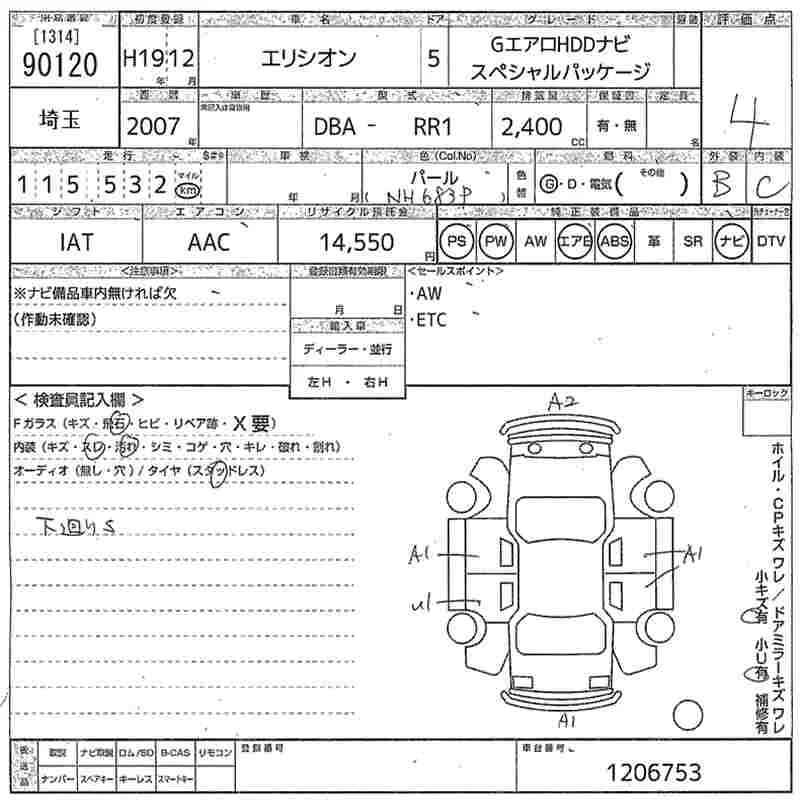 Honda ELYSION с аукциона Японии MIRIVE Saitama лот № 90120