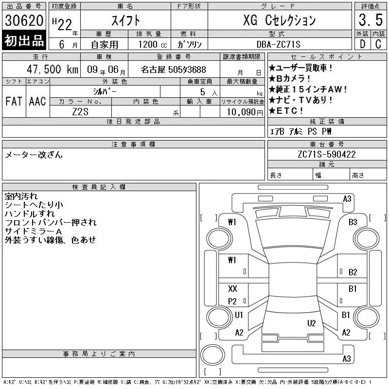 Suzuki SWIFT с аукциона Японии CAA Chubu лот № 30620