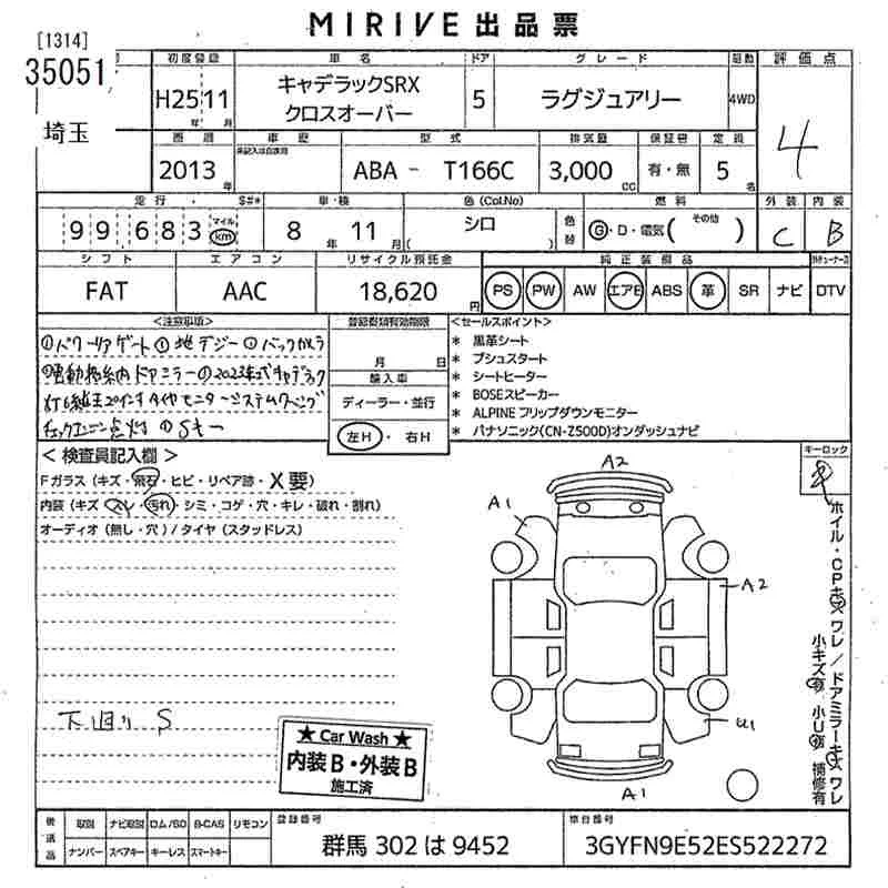 GM CADILLAC SRX с аукциона Японии MIRIVE Saitama лот № 35051