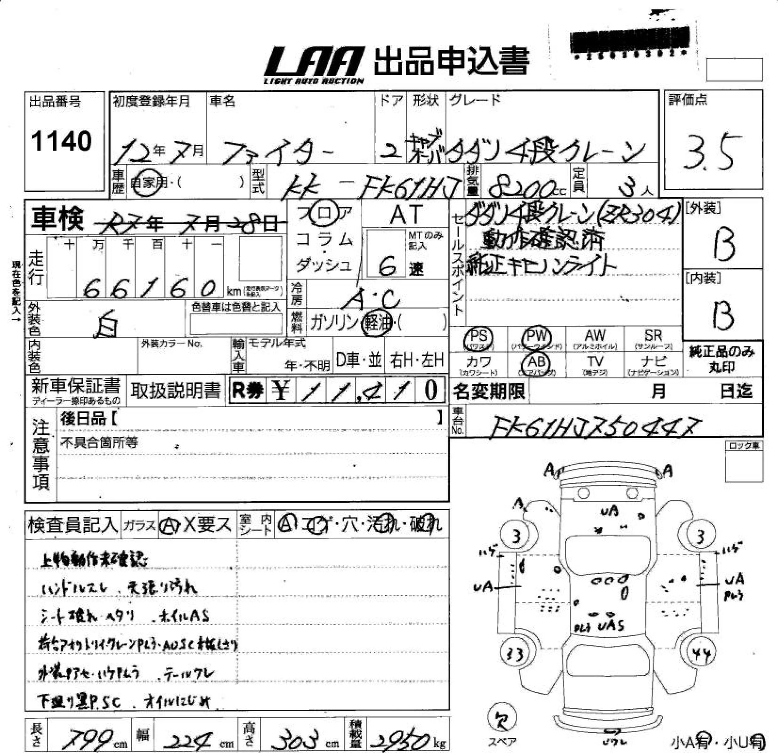 Mitsubishi FUSO FIGHTER с аукциона Японии LAA Shikoku лот № 1140