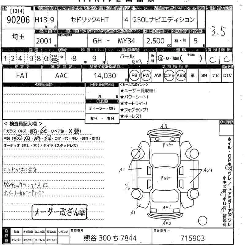 Nissan CEDRIC с аукциона Японии MIRIVE Saitama лот № 90206