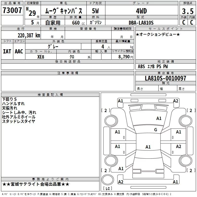 Daihatsu MOVE CANBUS с аукциона Японии TAA Tohoku лот № 73007