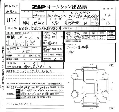 Mercedes-Benz CLA CLASS с аукциона Японии ZIP Osaka лот № 814