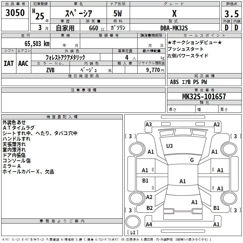 Suzuki SPACIA с аукциона Японии TAA Kanto лот № 3050