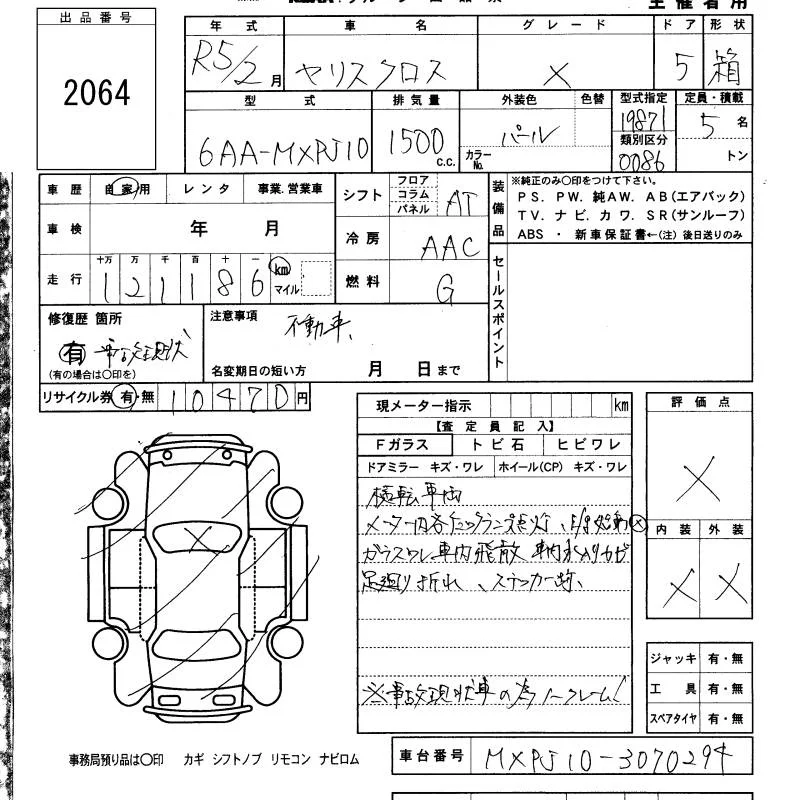 Toyota YARIS CROSS с аукциона Японии KCAA Fukuoka лот № 2064