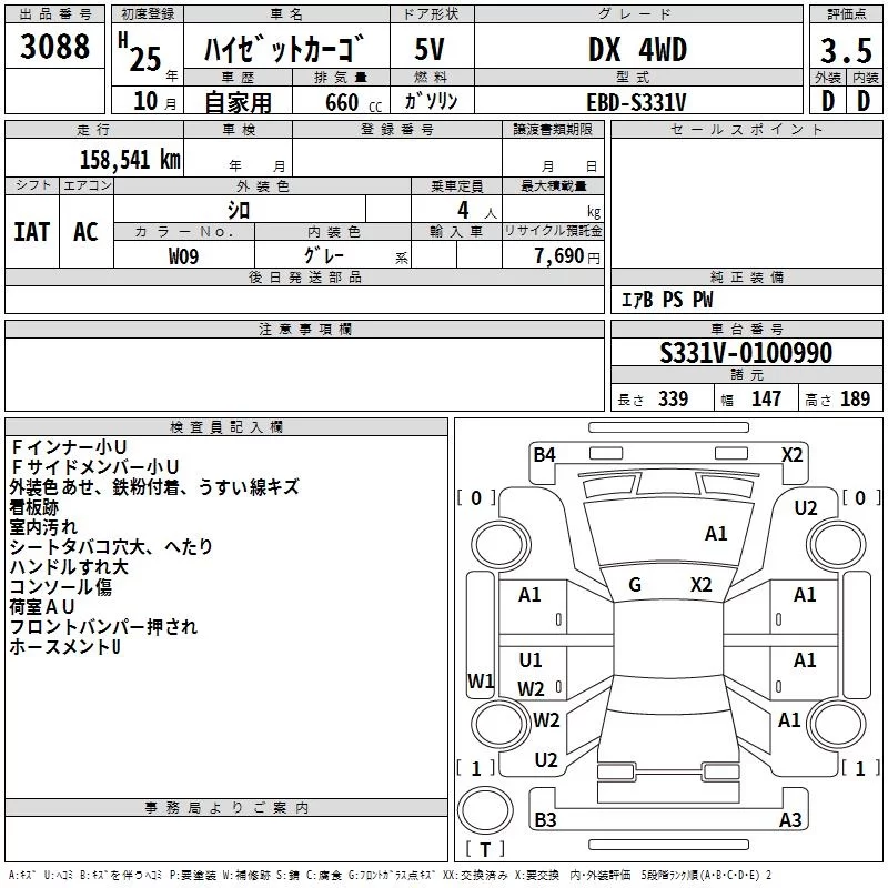 Daihatsu HIJET VAN с аукциона Японии TAA Kanto лот № 3088