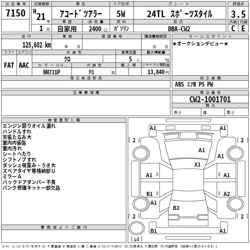 Honda ACCORD WAGON с аукциона Японии TAA Tohoku лот № 7150