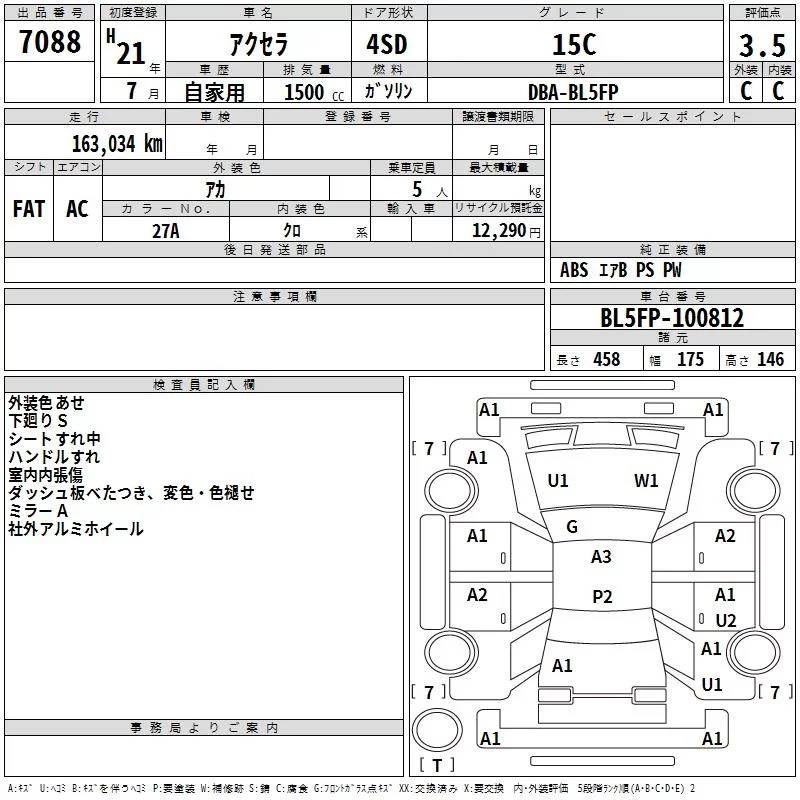 Mazda AXELA с аукциона Японии TAA Hokkaido лот № 7088