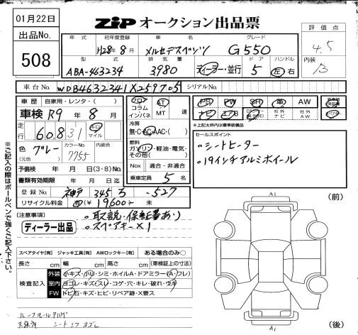 Mercedes-Benz GL CLASS с аукциона Японии ZIP Osaka лот № 508