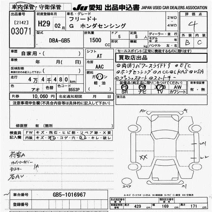 Honda FREED с аукциона Японии JU Aichi лот № 3071