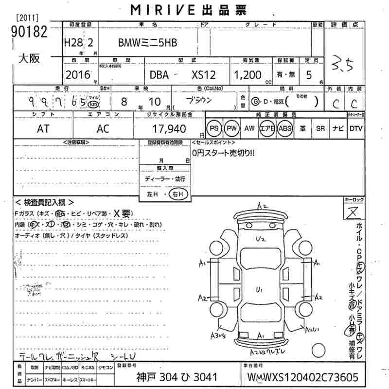 BMW MINI с аукциона Японии MIRIVE Osaka лот № 90182