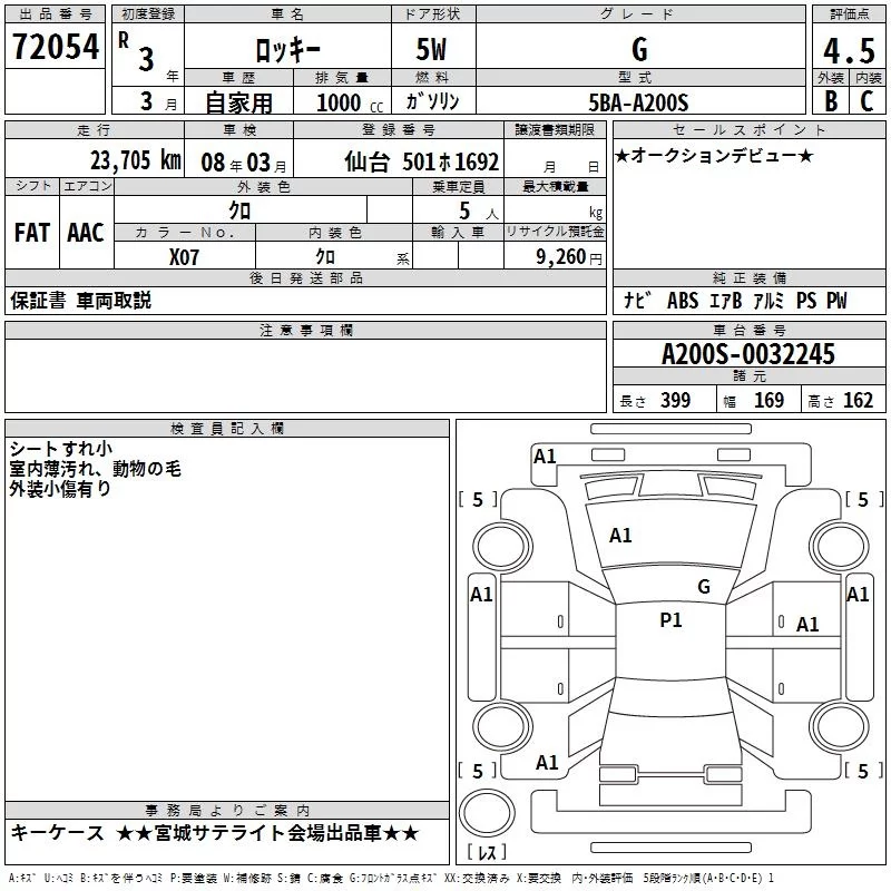 Daihatsu ROCKY с аукциона Японии TAA Tohoku лот № 72054