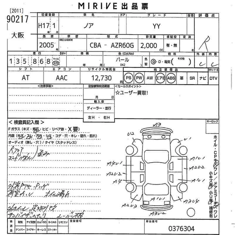 Toyota NOAH с аукциона Японии MIRIVE Osaka лот № 90217
