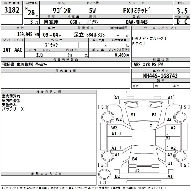 Suzuki WAGON R с аукциона Японии TAA Kanto лот № 3182