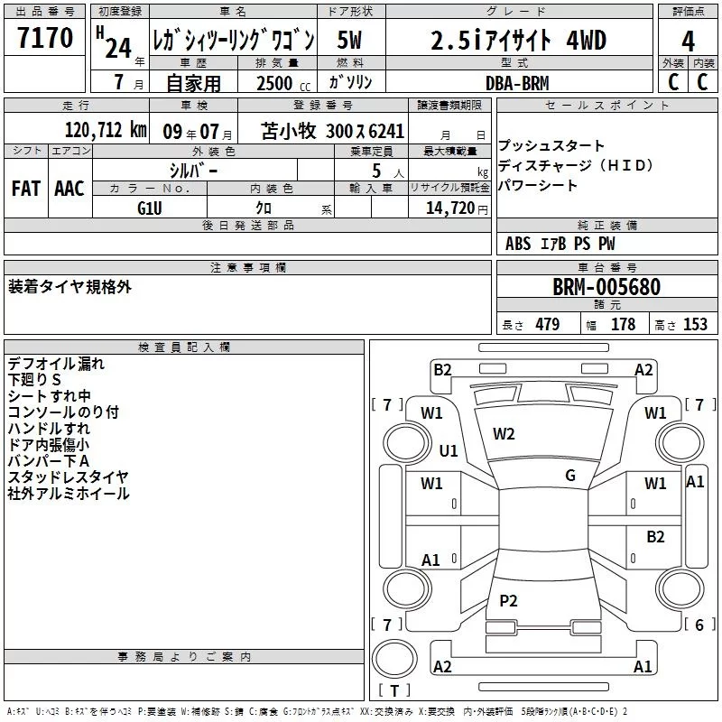 Subaru LEGACY с аукциона Японии TAA Hokkaido лот № 7170