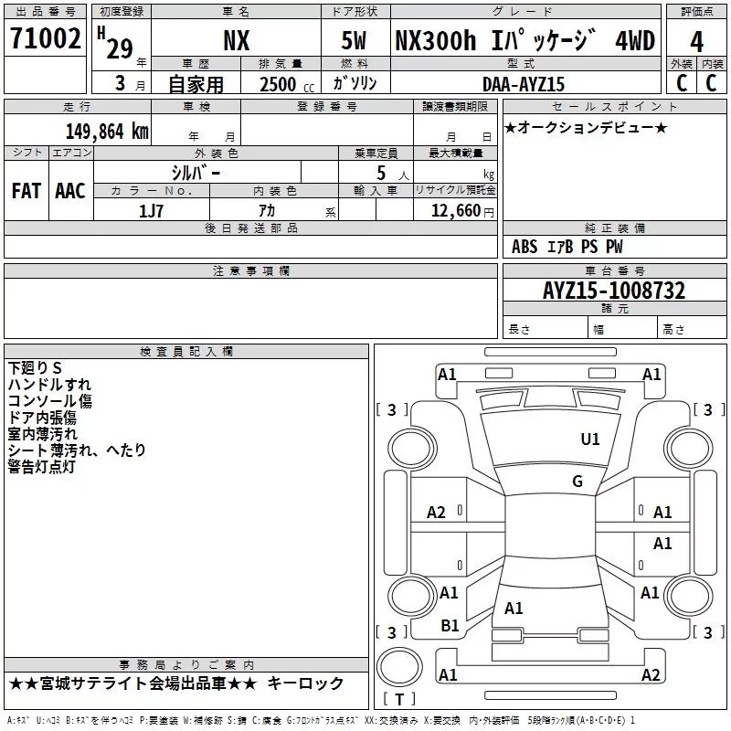 Lexus NX с аукциона Японии TAA Tohoku лот № 71002