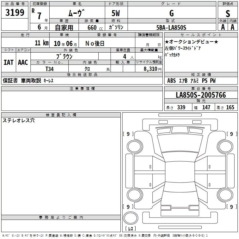 Daihatsu MOVE с аукциона Японии TAA Kanto лот № 3199