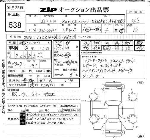 Mercedes-Benz E CLASS с аукциона Японии ZIP Osaka лот № 538