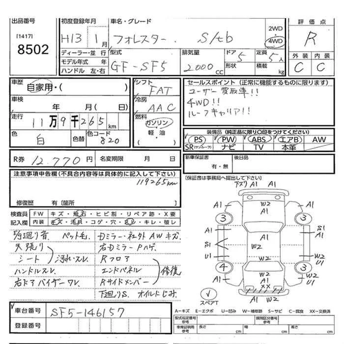 Subaru FORESTER с аукциона Японии JU Miyazaki лот № 8502