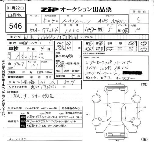 Mercedes-Benz A CLASS с аукциона Японии ZIP Osaka лот № 546