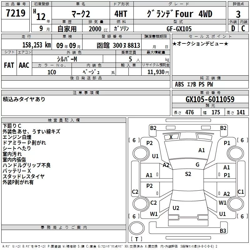 Toyota MARK II с аукциона Японии TAA Hokkaido лот № 7219