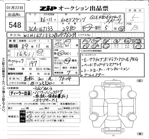 Mercedes-Benz GLE-Class с аукциона Японии ZIP Osaka лот № 548