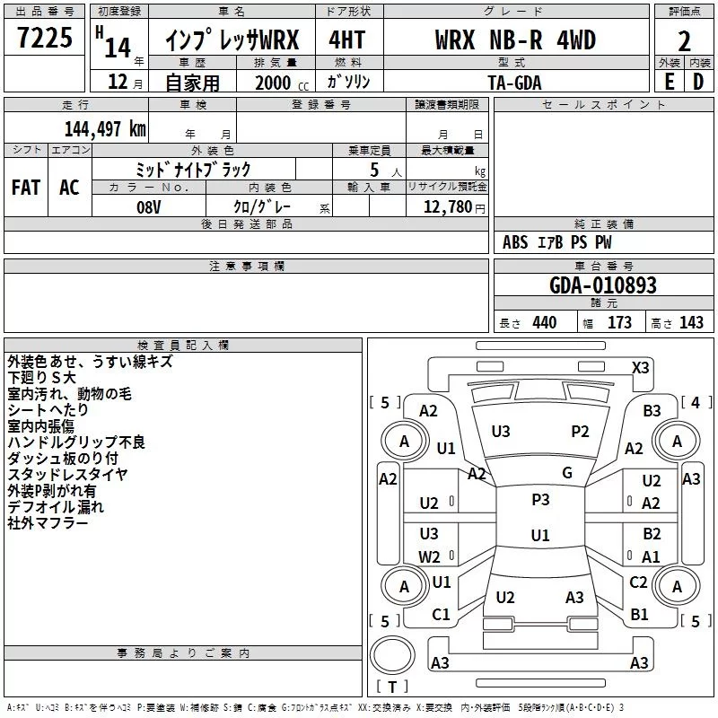 Subaru IMPREZA с аукциона Японии TAA Hokkaido лот № 7225