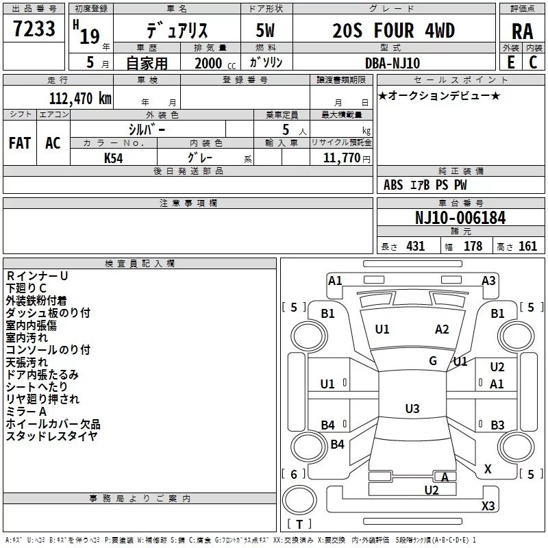 Nissan DUALIS с аукциона Японии TAA Hokkaido лот № 7233